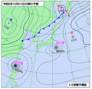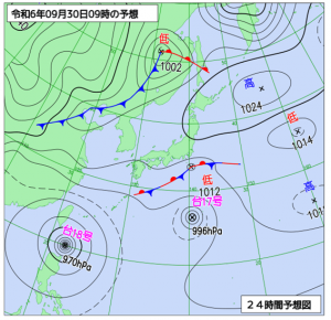 図2 29日発表の3日目(10月1日9時)の地上予想図