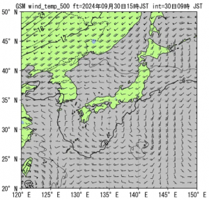 図3 2日目(30日15時)の500hPa面の気温予想図