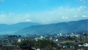 進行方向右側の席を取った場合には、八ヶ岳にかかる雲が参考になります。八ヶ岳にかかる雲から天気を推測する方法は、88回「冬型の天気 ~八ヶ岳~」をご参照ください。
