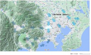 やる気がある雲の手前側にある小田原から酒匂川流域、大磯丘陵周辺は晴れています。ここは北側に丹沢山地があるので、北風が入ることができず、風の衝突が起きないからです。